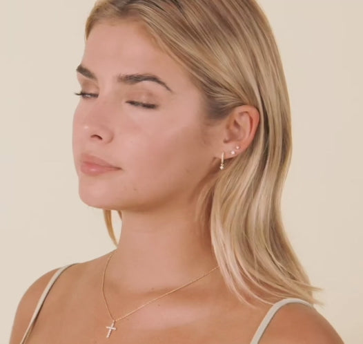 A refined cross necklace crafted in 18K gold vermeil for lasting beauty and meaning. Featuring hand-selected cubic zirconia and a sleek sliding chain, this piece offers elevated shine with everyday durability.